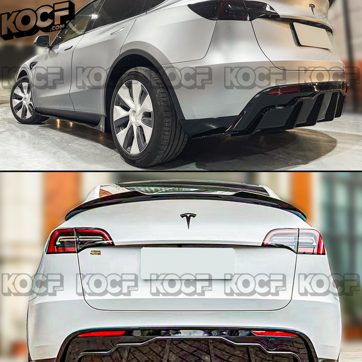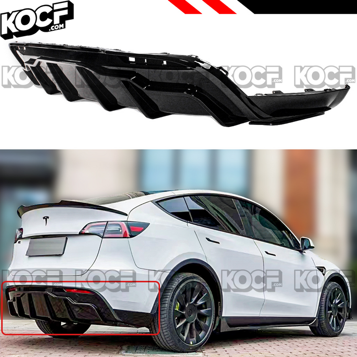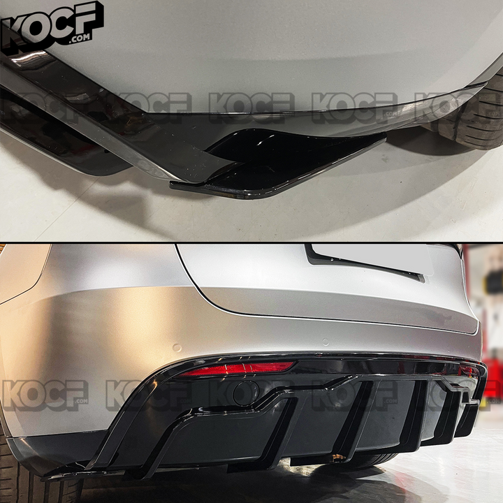 Painted Gloss Black Aggressive Shark Fin Style Rear Bumper Diffuser with Corner Extensions Compatible for Tesla Model Y 2020-2024.These are designed with state of the art 3D scanning technology for the best style and fitment.